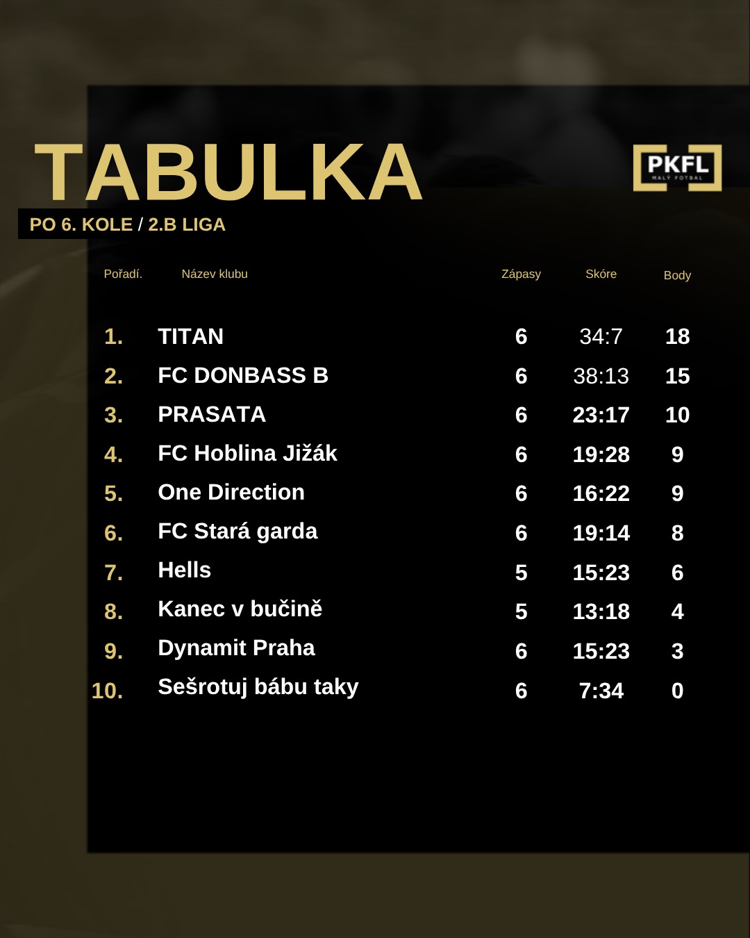 Máme za sebou šesté kolo v každé lize Pražské Klubové Fotbalové Ligy.
