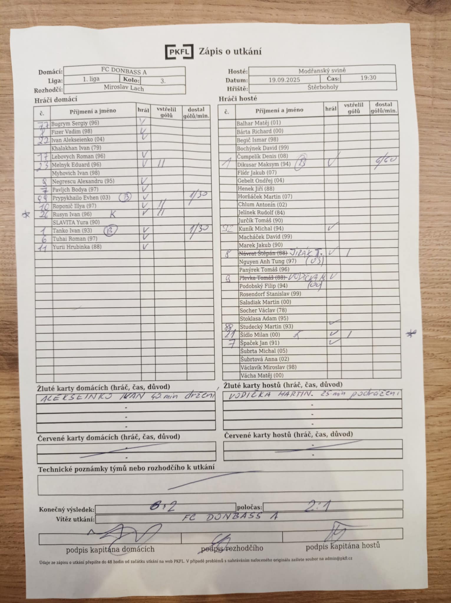 Zápis o utkání.