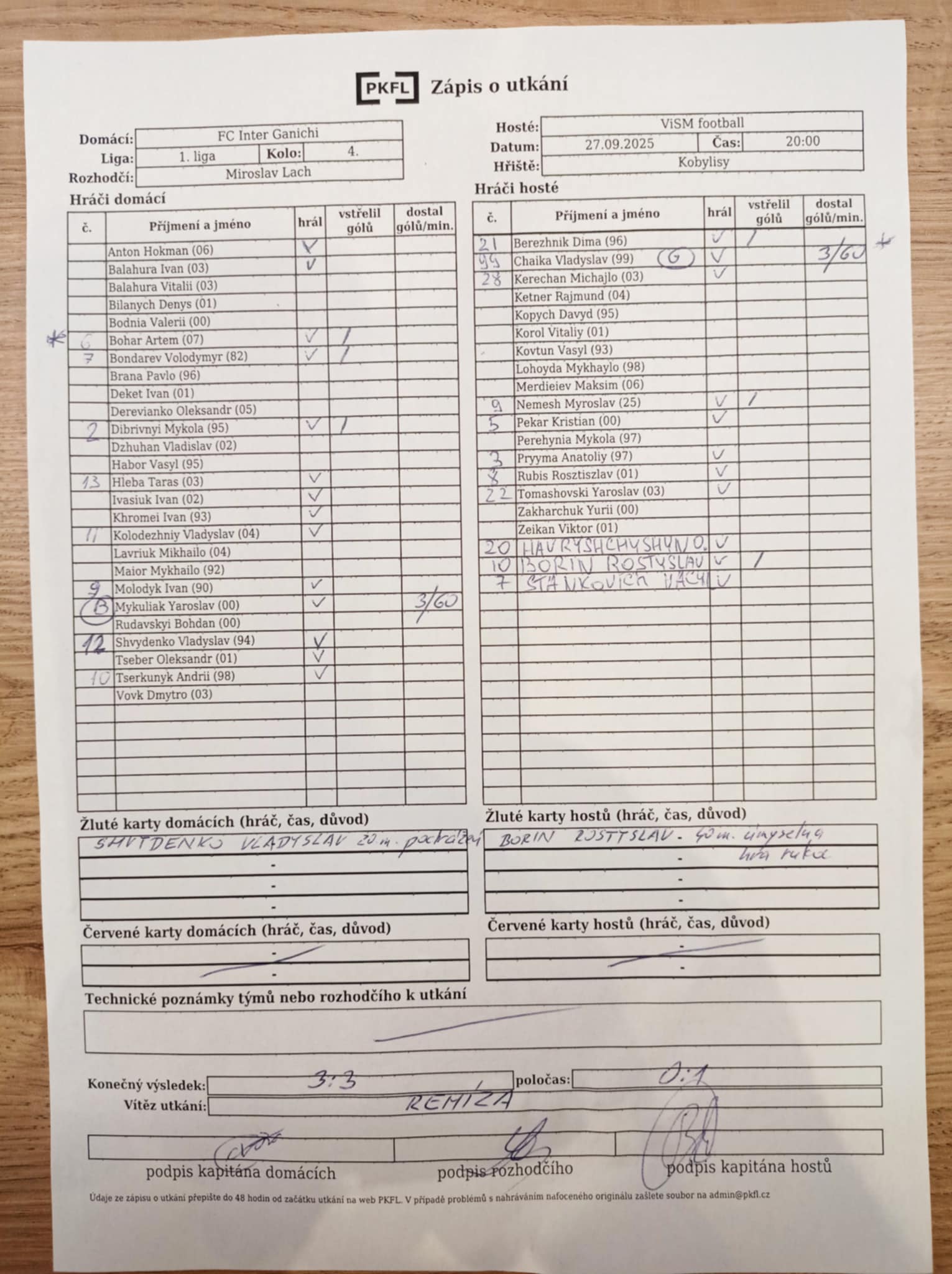 Komentář: Výborný zápas z obou stran, hráno naplno od první do poslední minuty. Atmosféra jako na derby pražských S. Spravedlivá remíza. Diváci: 45.