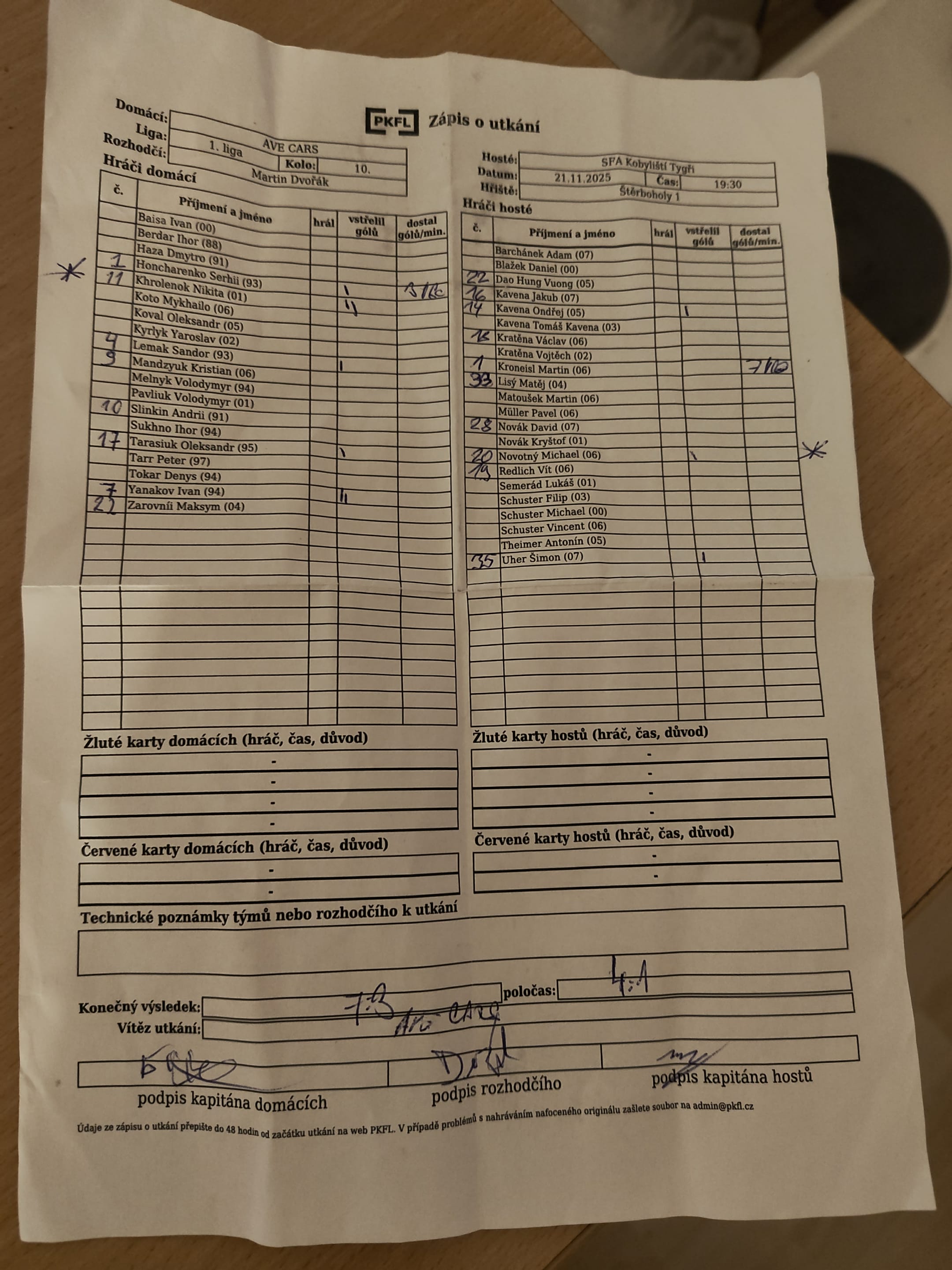 Komentář: 10. Kolo odstartovalo utkání mezi leaderem soutěže AVE Cars a hostujícími Kobylisy. Domácí měli ihned jasně navrch. Jejich produktivita a pohledná hra předznamenala jistou dominanci v zápase. I když se snažili hosté disciplinovaně bránit, tak bohužel jim to dlouhodobě nevydrželo. Poločas 4:1 a prakticky bylo o zápase rozhodnuto. V druhém poločase sice domácí slevili více z bránění, ale hostům se nepodařilo zužitkovat více než dvě branky. Zasloužená výhra domácího týmu a upevnění první pozice.