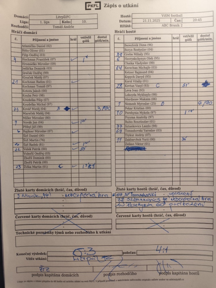 Zápis o utkání.