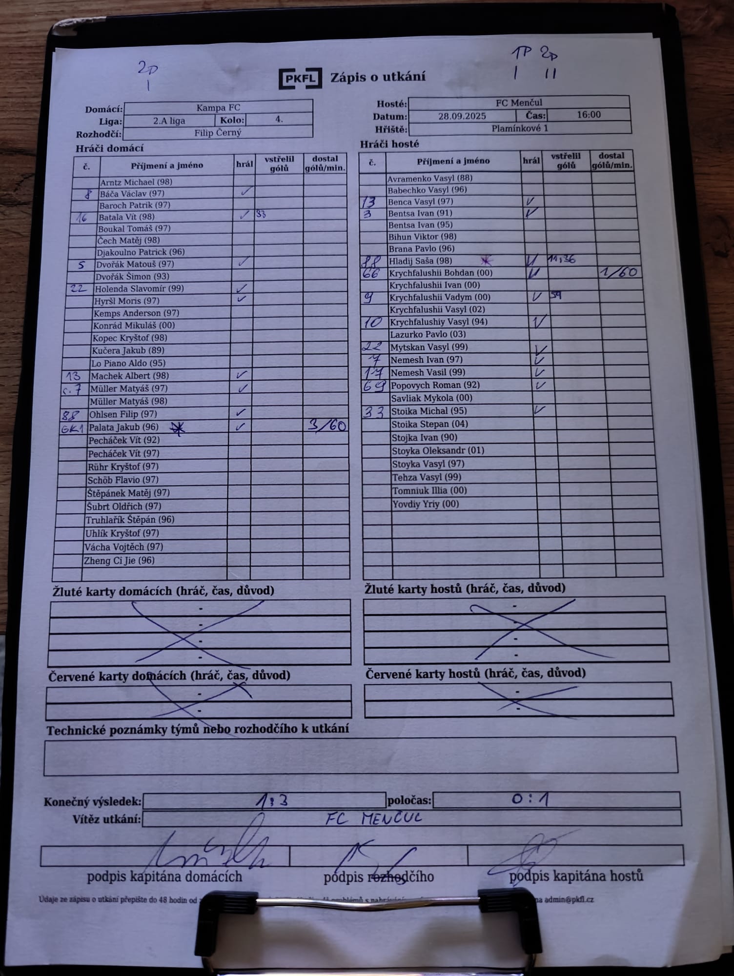 Komentář: Kampa se na lídra skupiny kvalitně připravila. Utkání bylo hráno nahoru dolů a dlouho držel nadějný výsledek Palata. Hosté výsledek pečetili až v poslední minutě.