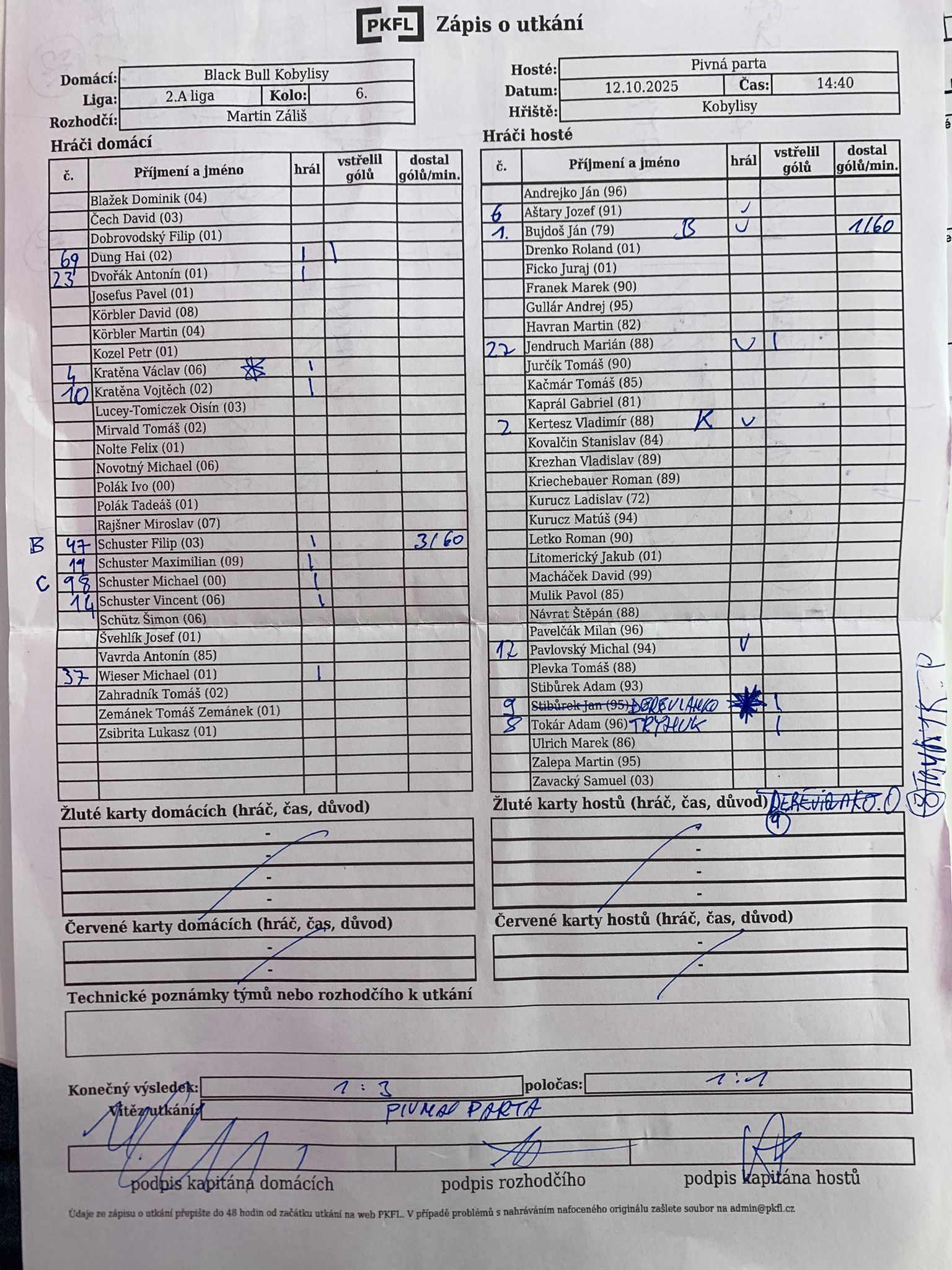 Komentář: Hosté hráli opatrně a díky rychlým protiútokům si vytvořili spoustu šancí. Už ve 25’ mohl rozhodnout Jendruch, ale zadařilo se mu až ve 47’ kdy už jen navyšoval skóre na 1:3. Pěkný fotbalový zápas.
