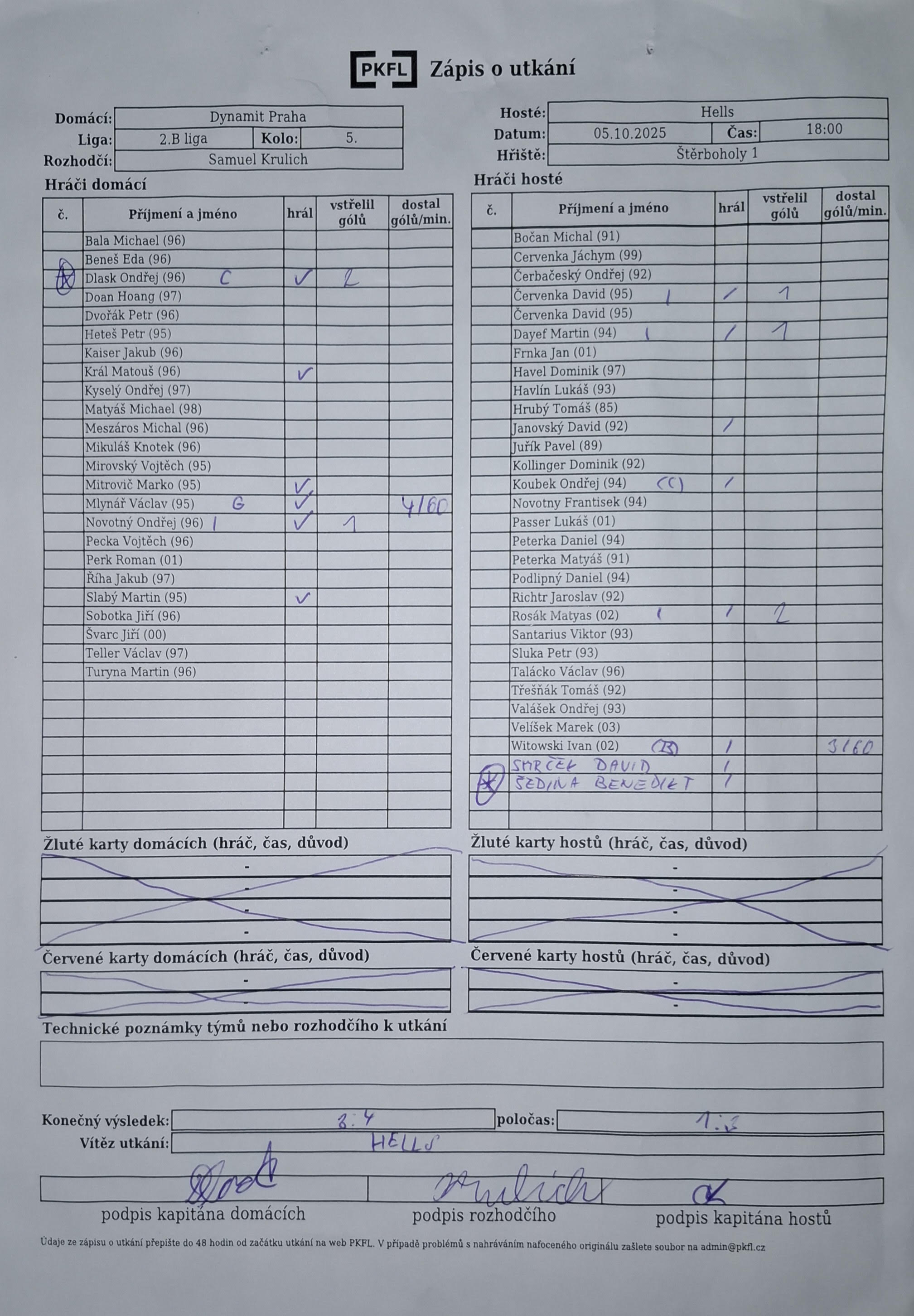Komentář: První poločas byl poměrně jednoznačný v podání hostů. Ve druhém poločase se hra vyrovnala, ale domácím bez možnosti střídání se nepodařil výsledek zvrátit.