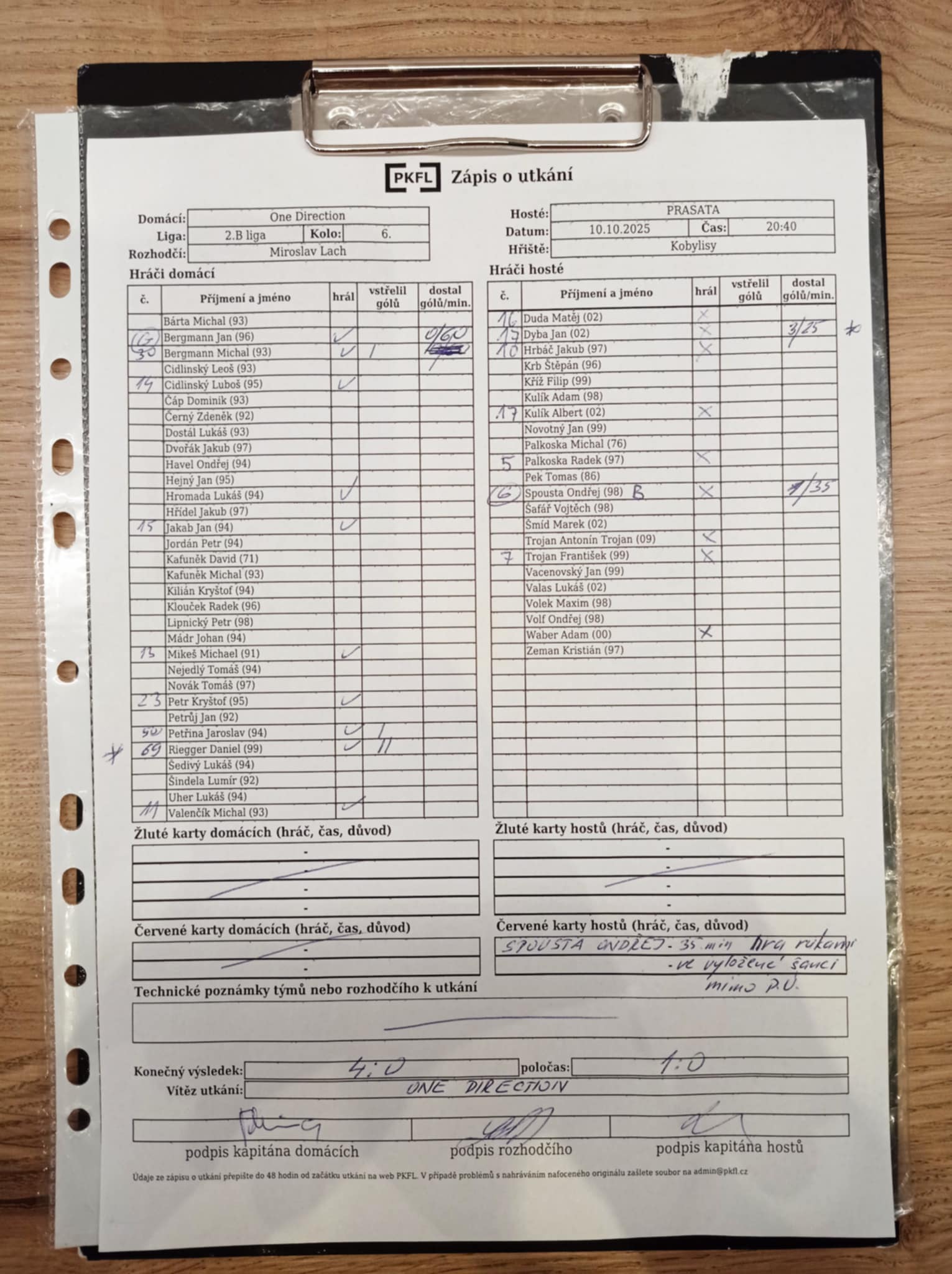 Komentář: Večerní zápas se hrál ve vysokém tempu. Domácí šli v desáté minutě do vedení a do přestávky už gól nepadl. Druhý poločas začal stejně ale v 35.minutě byl gólman hostí vyloučen a domácí přesilovku využili, přidali ještě tři góly a připsali si tři body do tabulky.