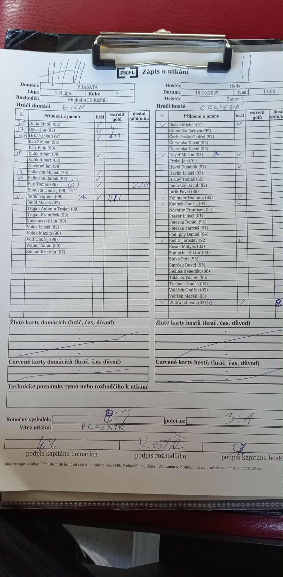 Zápis o utkání.