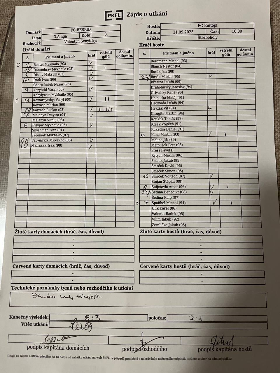 Komentář: Domácí byli silnější,tak jak měly hrača -Kovtash Ruslan jaki udělal pět gólů .