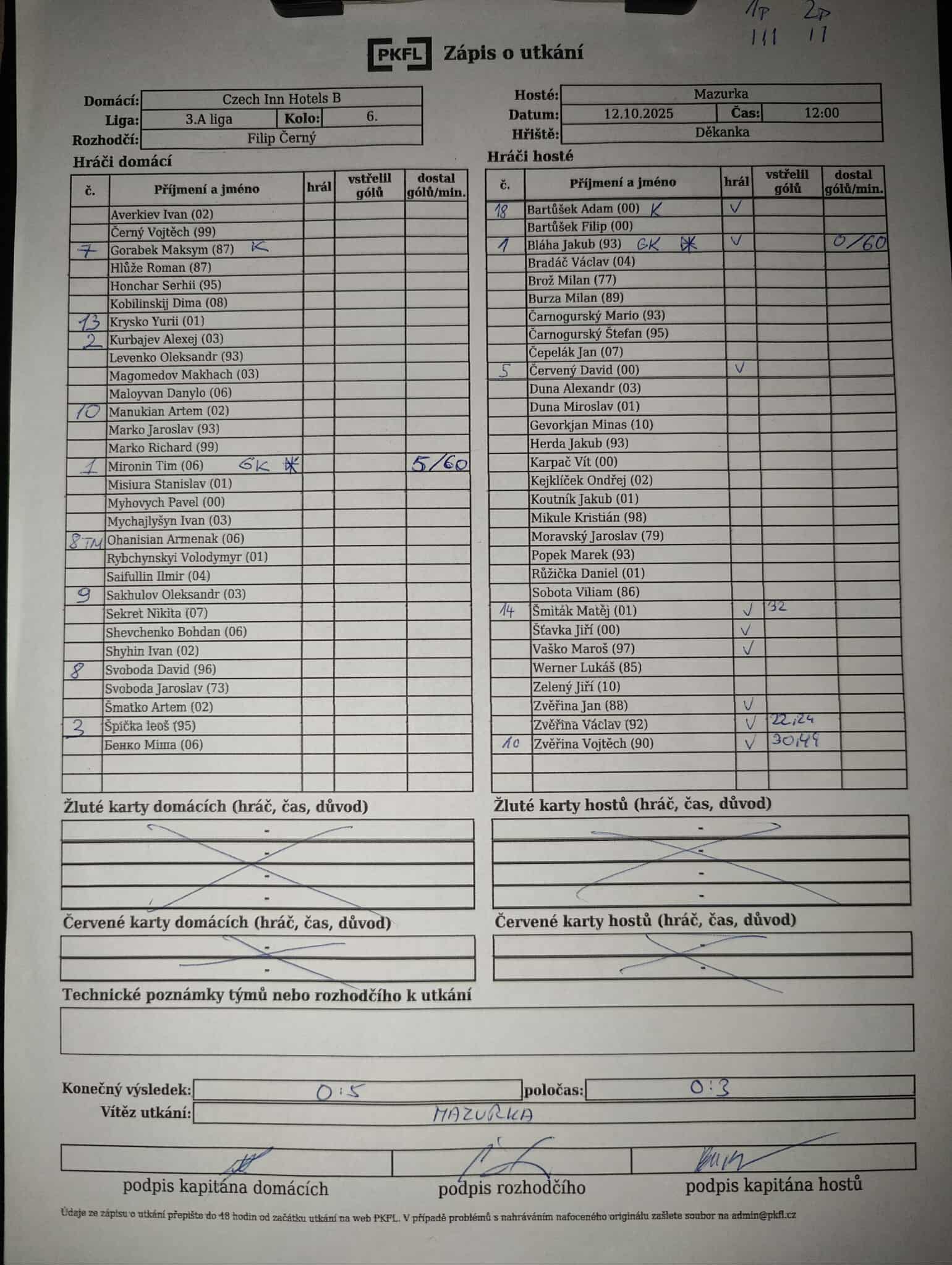 Komentář: Pohledné a bojovné utkání s jasným výsledkem pro hosty. Na hřišti to však byl vyrovnaný zápas ale branku hostů uzavřela obrana a hlavně skvěle chytající Bláha.