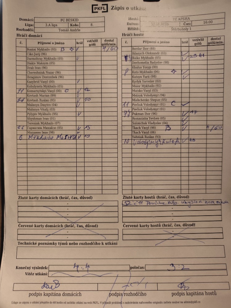 Zápis o utkání.