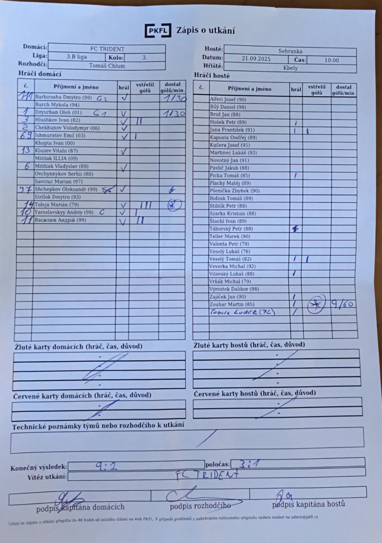 Zápis o utkání.