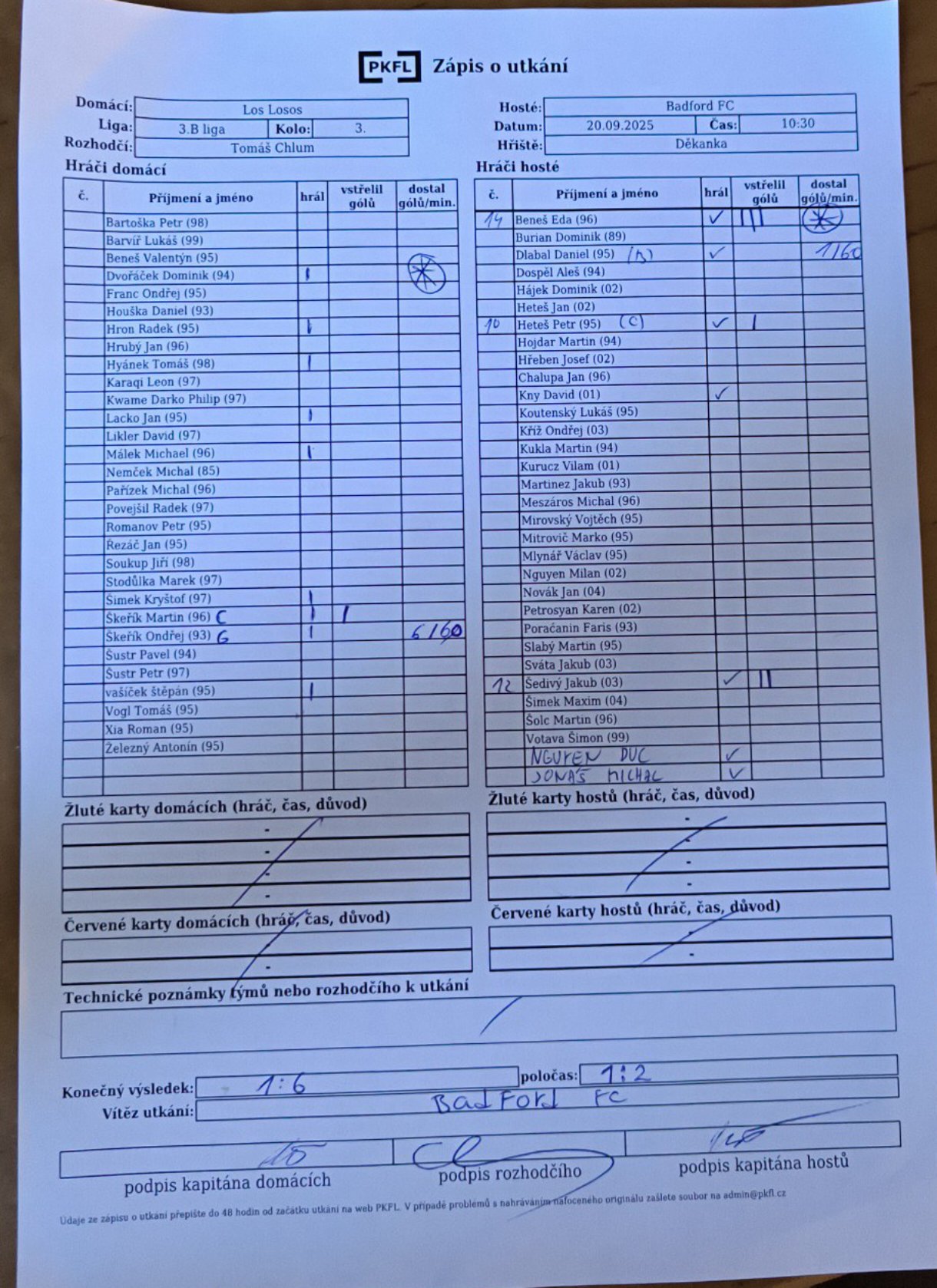 Komentář: Hostující tým navázal na předchozí výsledky a odvezl si 3 body z Děkanky. Domácím se nedařilo dovést slibně rozjeté akce do finální verze v podobě branky ody hnedka 4x selhali ve vyložené šanci. "A tím pádem když nedáš gól nemůžeš pomýšlet na body."