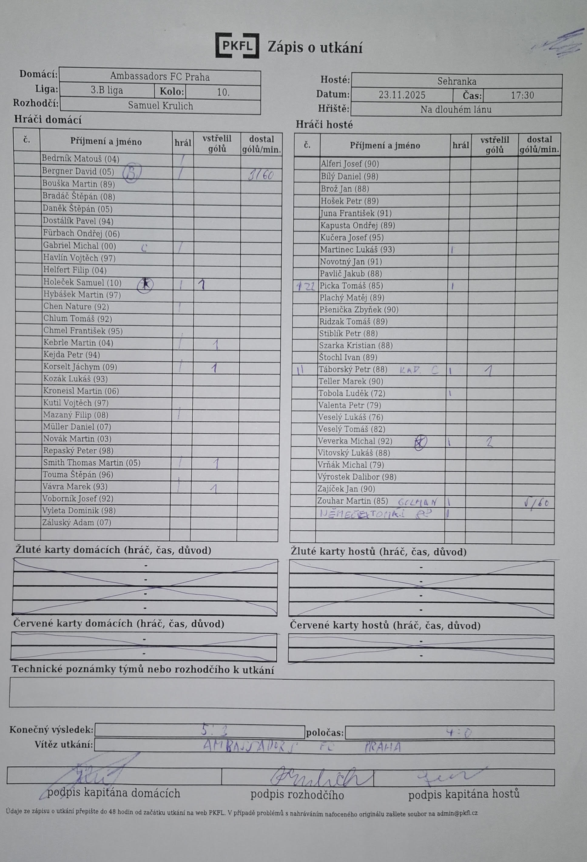 Komentář: Mrazivý večer Na dlouhém lánu nabídl souboj 2 týmů ze spodku tabulky 3.B ligy. První poločas patřil jasně domácím, kteří si vytvořili velký čtyřgólový náskok. Ve druhém poločase se síly vyrovnaly a hosté dokázali snížit. Dorovnat velký náskok z první poloviny utkání však nedokázali a za výhru 5:3 si 3 body odnášejí domácí.