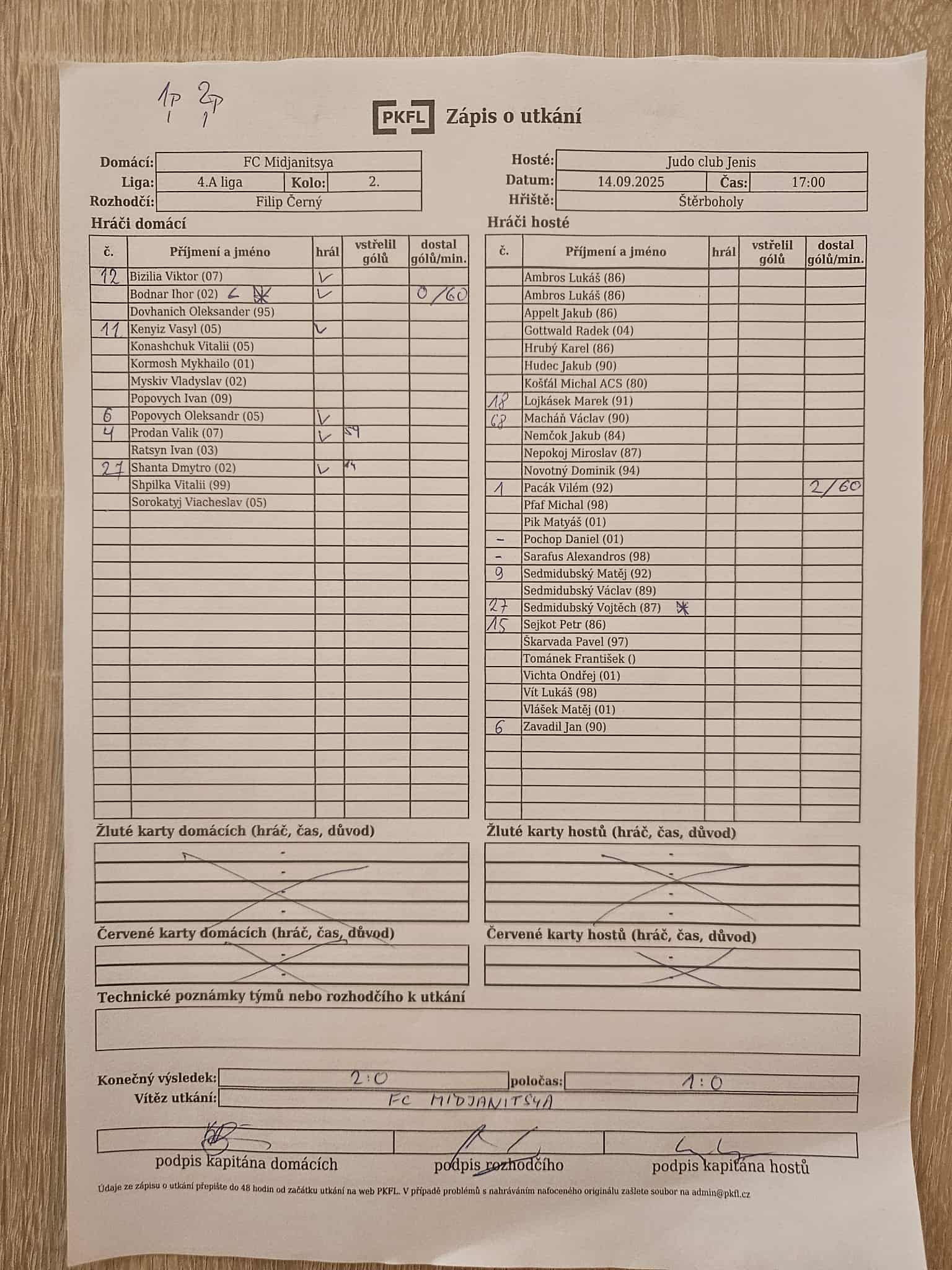 Zápis o utkání.