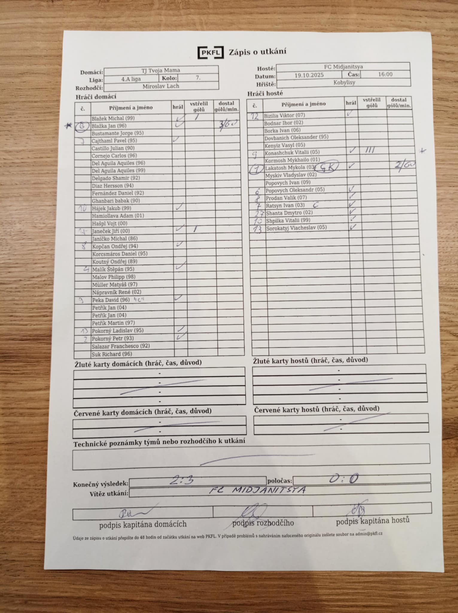 Zápis o utkání.
