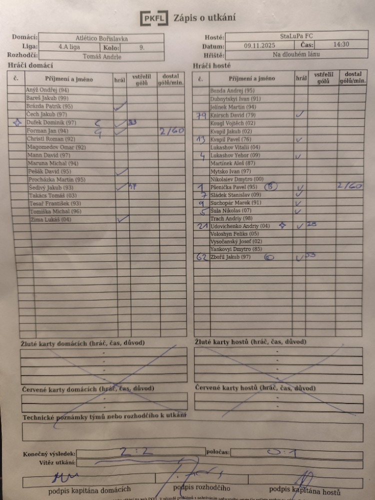 Zápis o utkání.