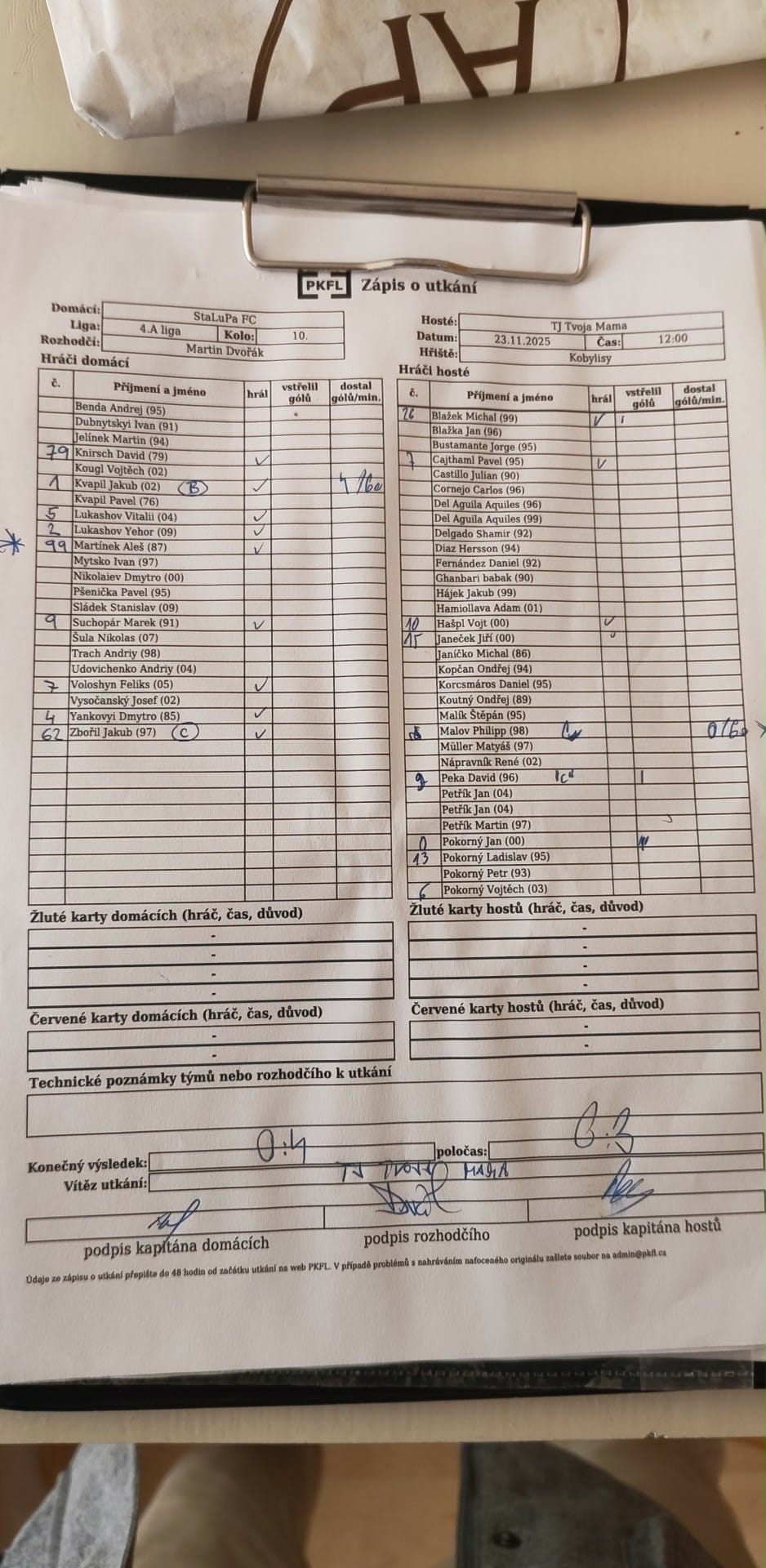 Zápis o utkání.