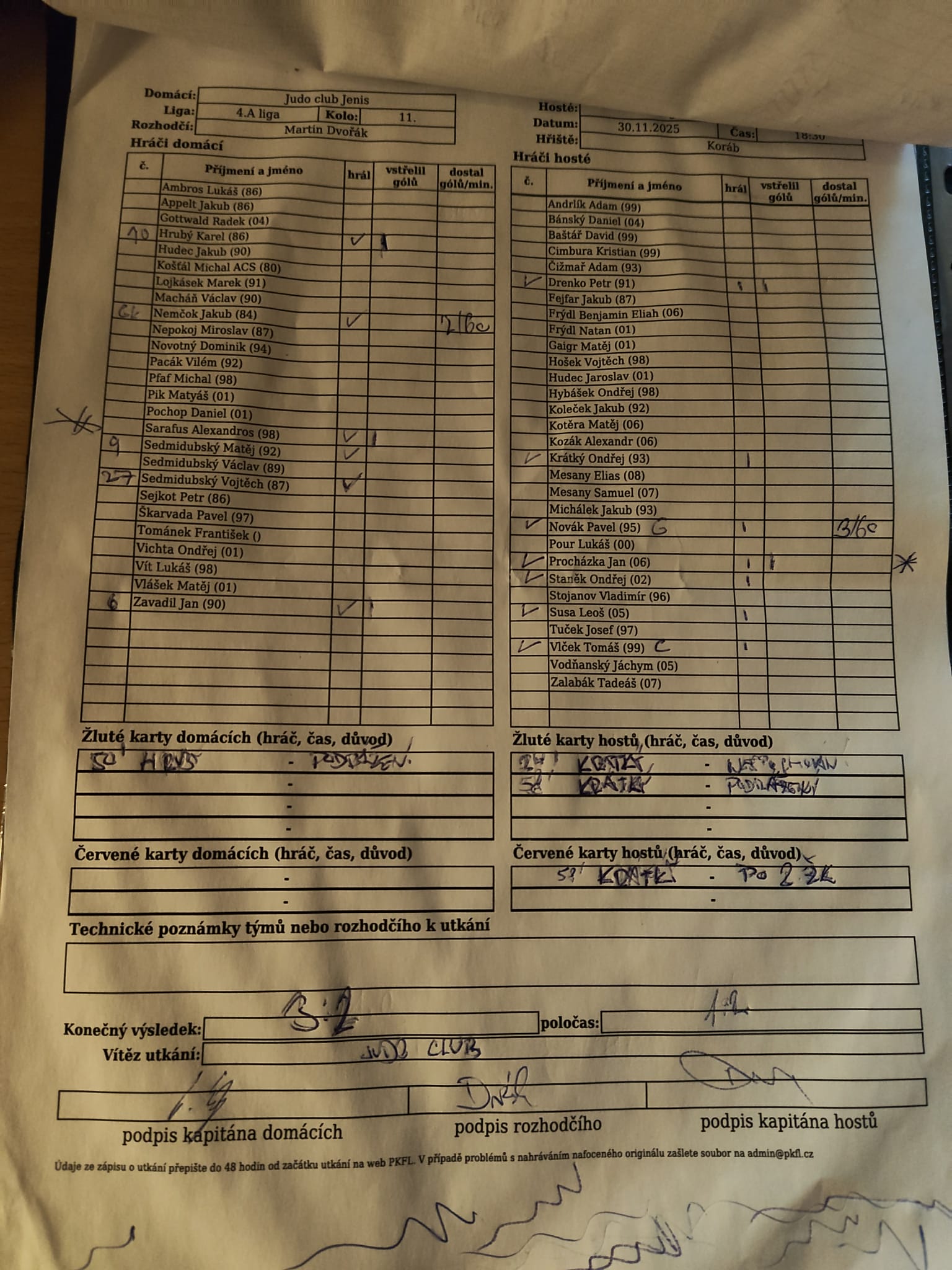 Komentář: Zápas vypadal opravdu vyrovnaně. Oba týmy nechtěli dopustit výrazné vedení na jednu co druhou stranu. Hosté dlouho své vedení po 1. Poločase neudrželi a domácí srovnali. Poté se dostali pěknou brankou do vedení. V závěru hosty oslabila červená karta. Ale i přesto v krátké době se nic zvláštního nestalo