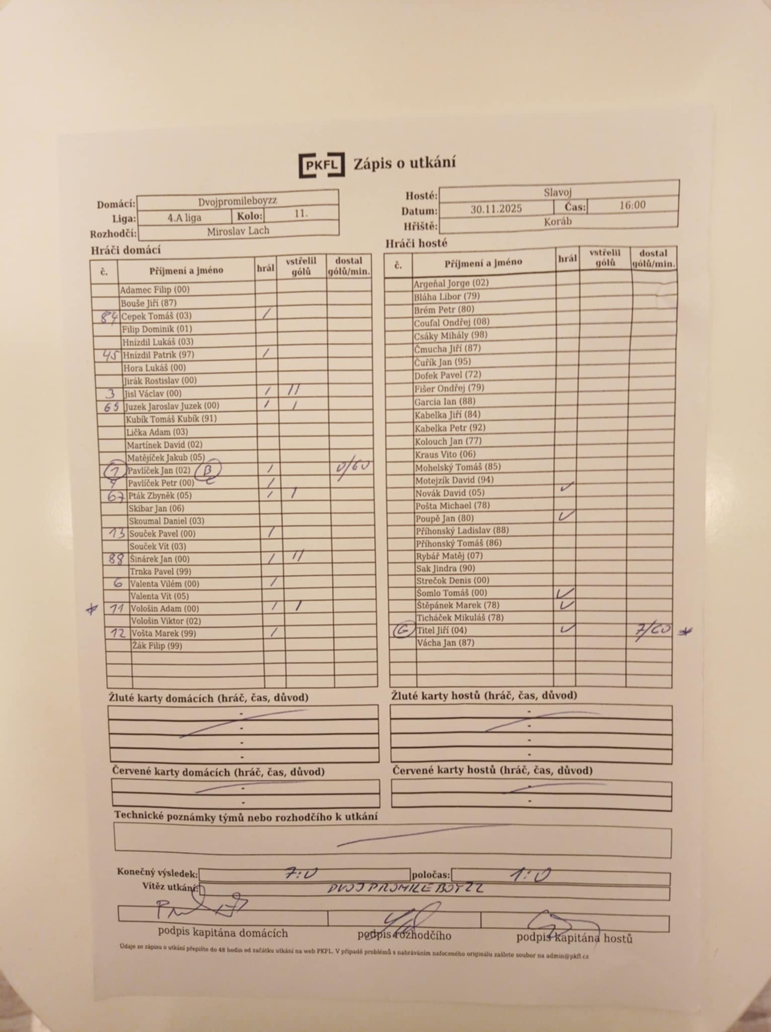 Komentář: Hosté nastoupili jenom v pěti, domácí férově taky. Zápas lépe zvládli domácí, hosté ještě první poločas drželi příznivý stav ale druhý poločas domácí už ovládli hřiště a zaslouženě vyhráli.