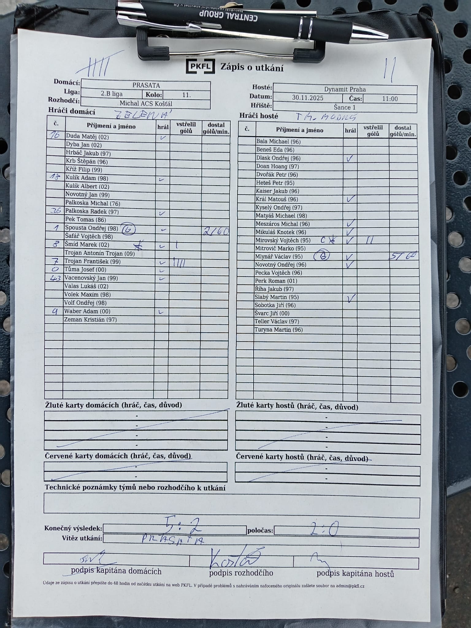 Zápis o utkání.