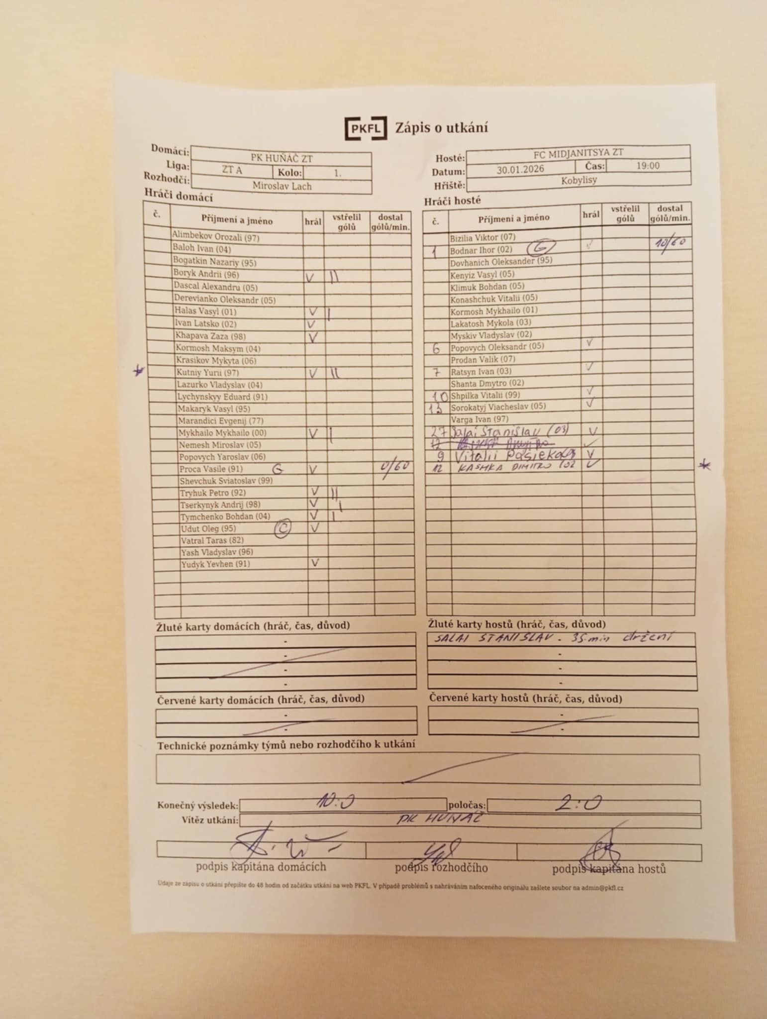 Zápis o utkání.