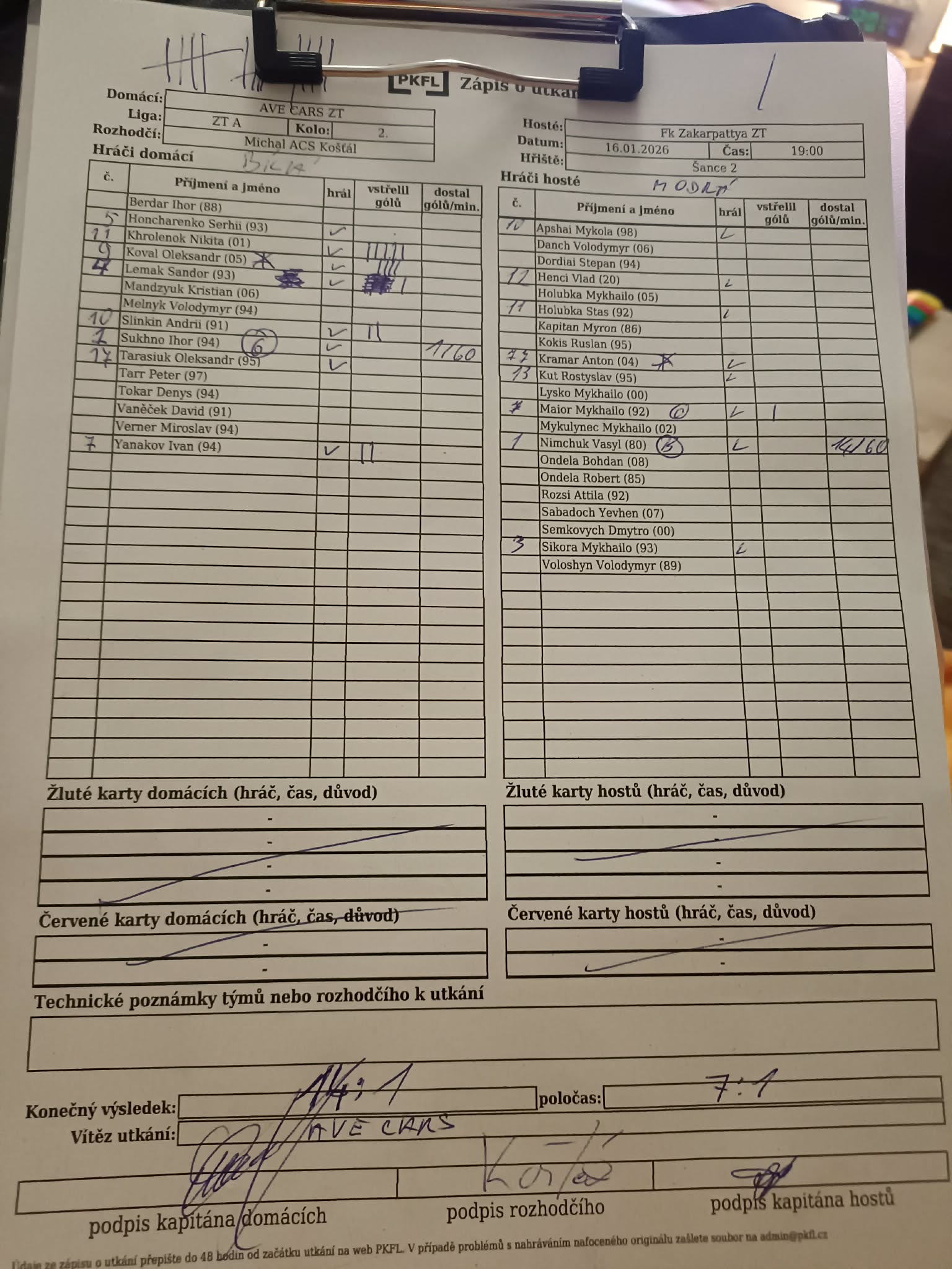 Zápis o utkání.