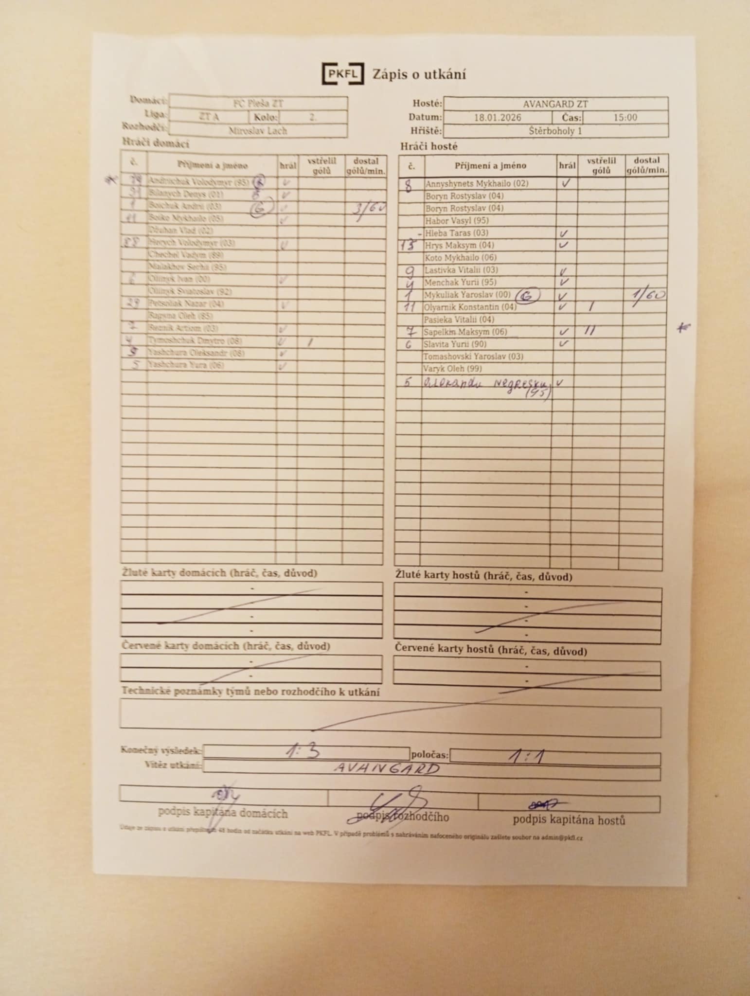 Komentář: Oba týmy hráli útočně, hosté byli více na míči ale domácí dobře bránili. Na první gól se čekalo až do dvacáté minuty, domácí šli do vedení ale za pět minut bylo vyrovnáno a tak skončil první poločas. Ve druhé polovině se obraz hry nezměnil a když se zdálo že zápas skončí remízou tak hosté v poslední minutě dali dva góly a připisují si tři body do tabulky.