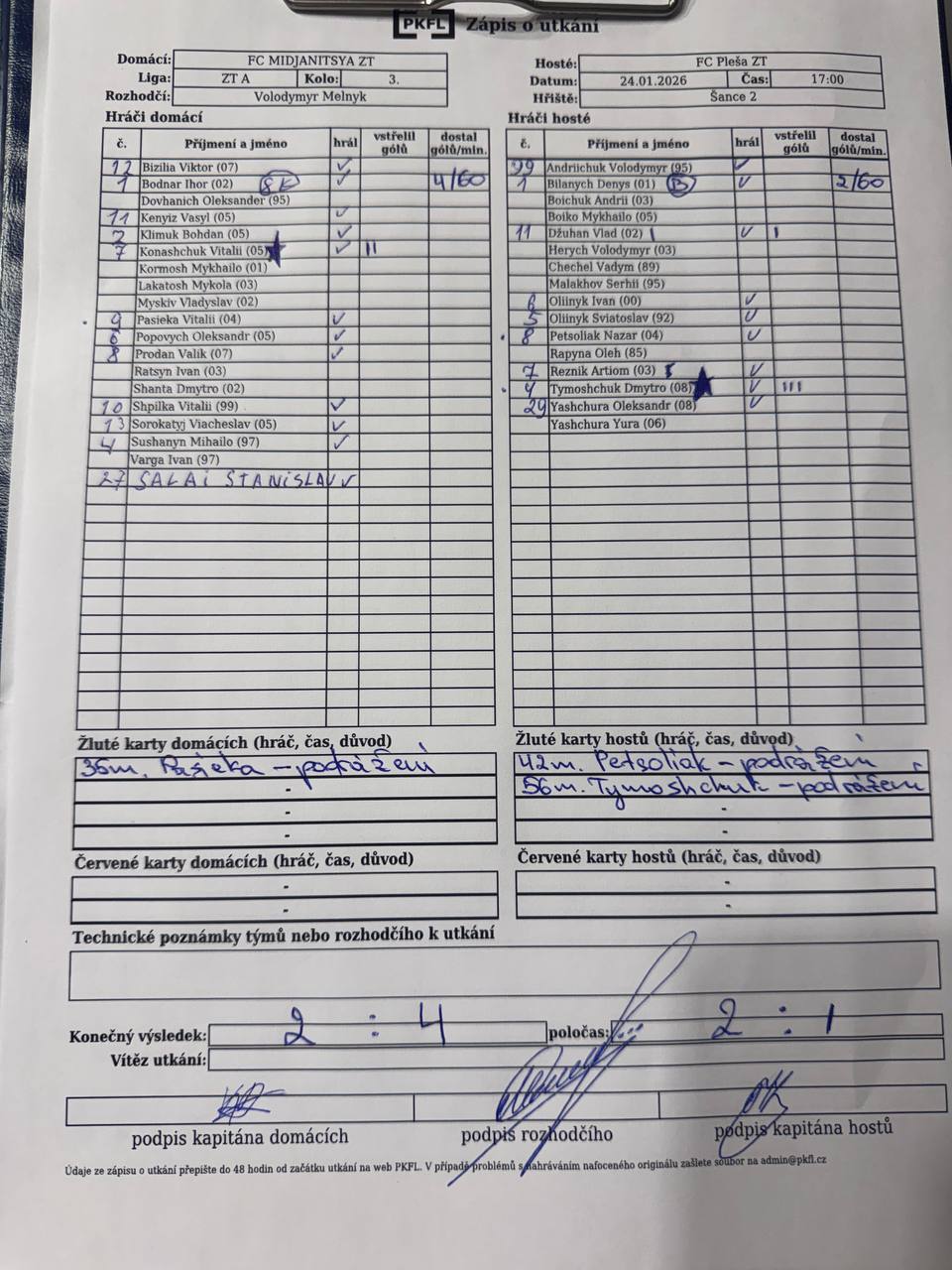 Zápis o utkání.
