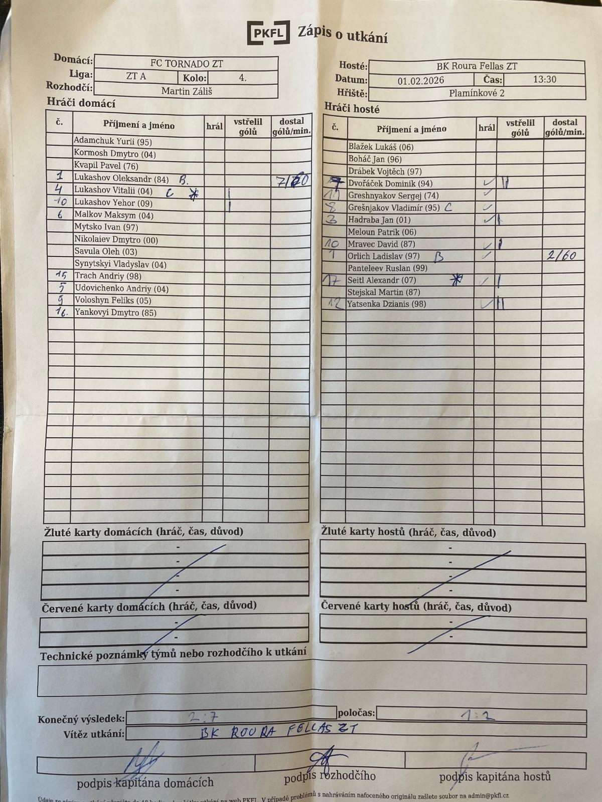 Zápis o utkání.