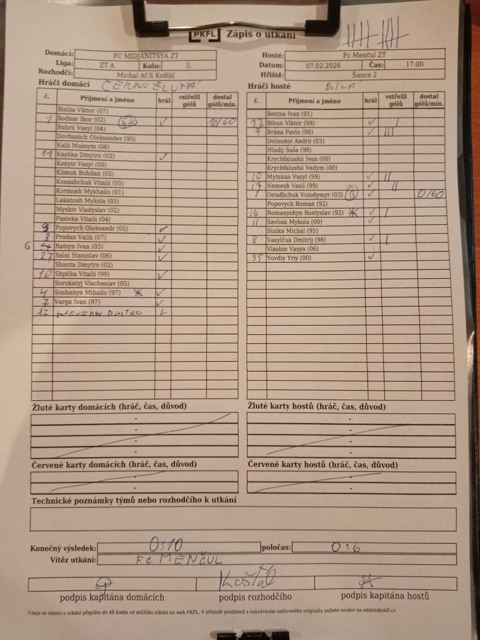 Zápis o utkání.