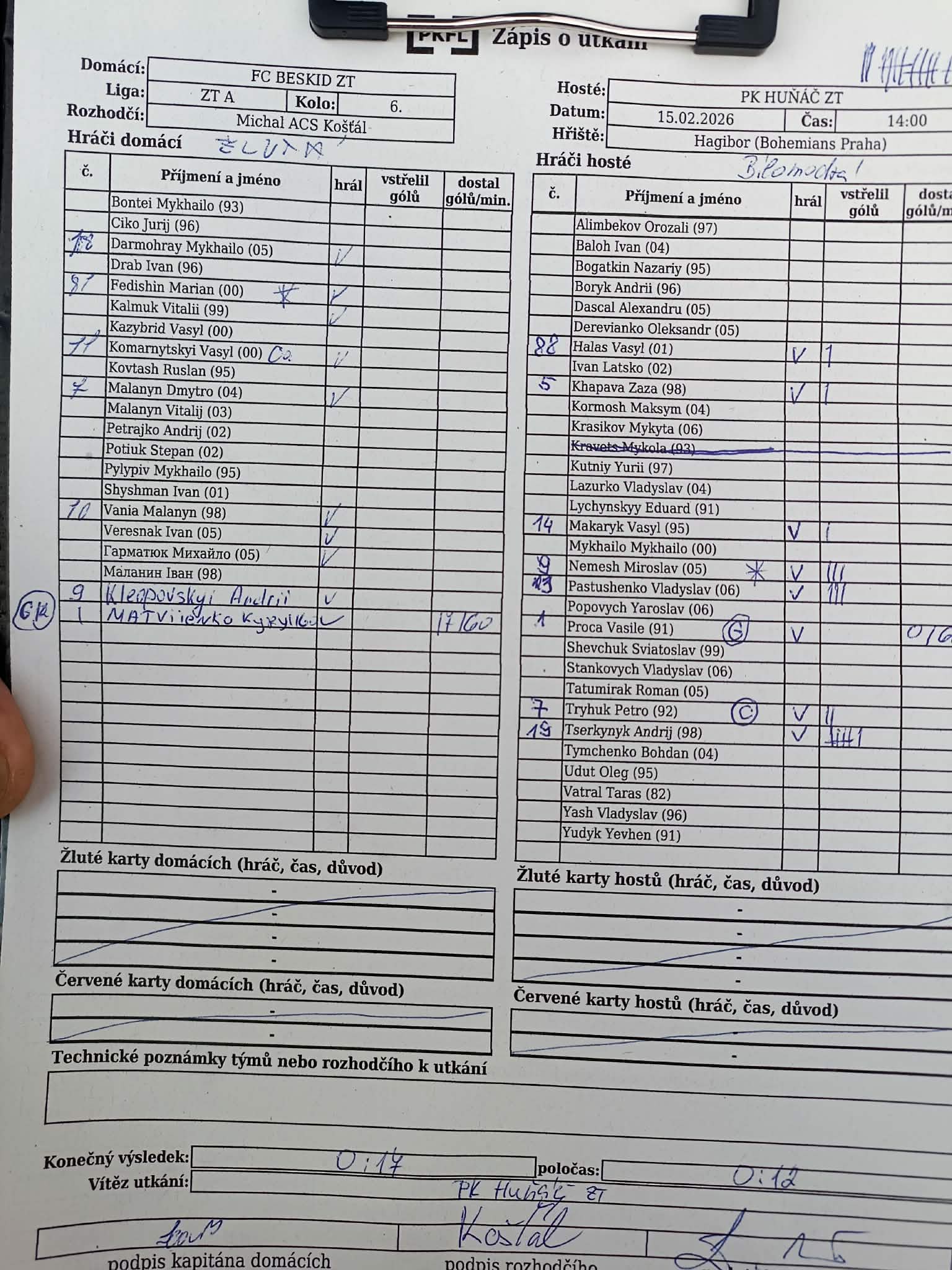 Komentář: Hosté od úvodu zápasu dominovali a pohlednými akcemi navyšovali skóre ale magickou dvacítku se jim dát nepodařilo. Domácí si také vytvořili několik slibných šanci ale gól se jím nepodařilo vstřelit.