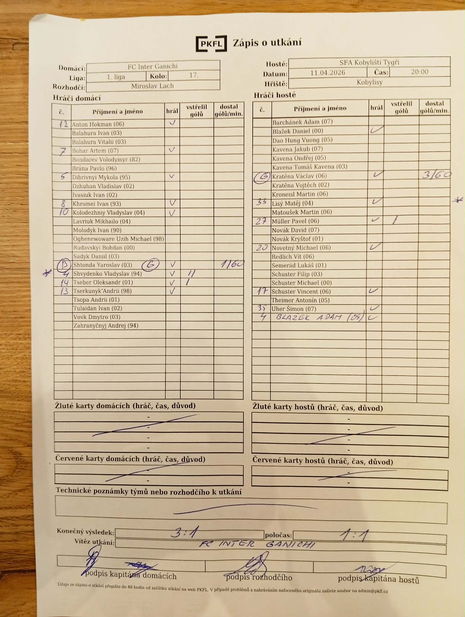 Komentář: Večer na Kobylisích byl k vidění dobrý fotbal. Domácí byli více na míči, hosté hráli stažení na svojí polovinu a vyráželi do protiútoku. V desáté minutě jim to vyšlo a šli do vedení. Inter ale ještě do přestávky vyrovnal. Po pauze domácí ještě více zabrali a deset minut před koncem šli do vedení. Hosté se snažili o vyrovnání ale do otevřený obrany dostali třetí gól a o vítězi bylo rozhodnuto. Slušné a fér utkání.