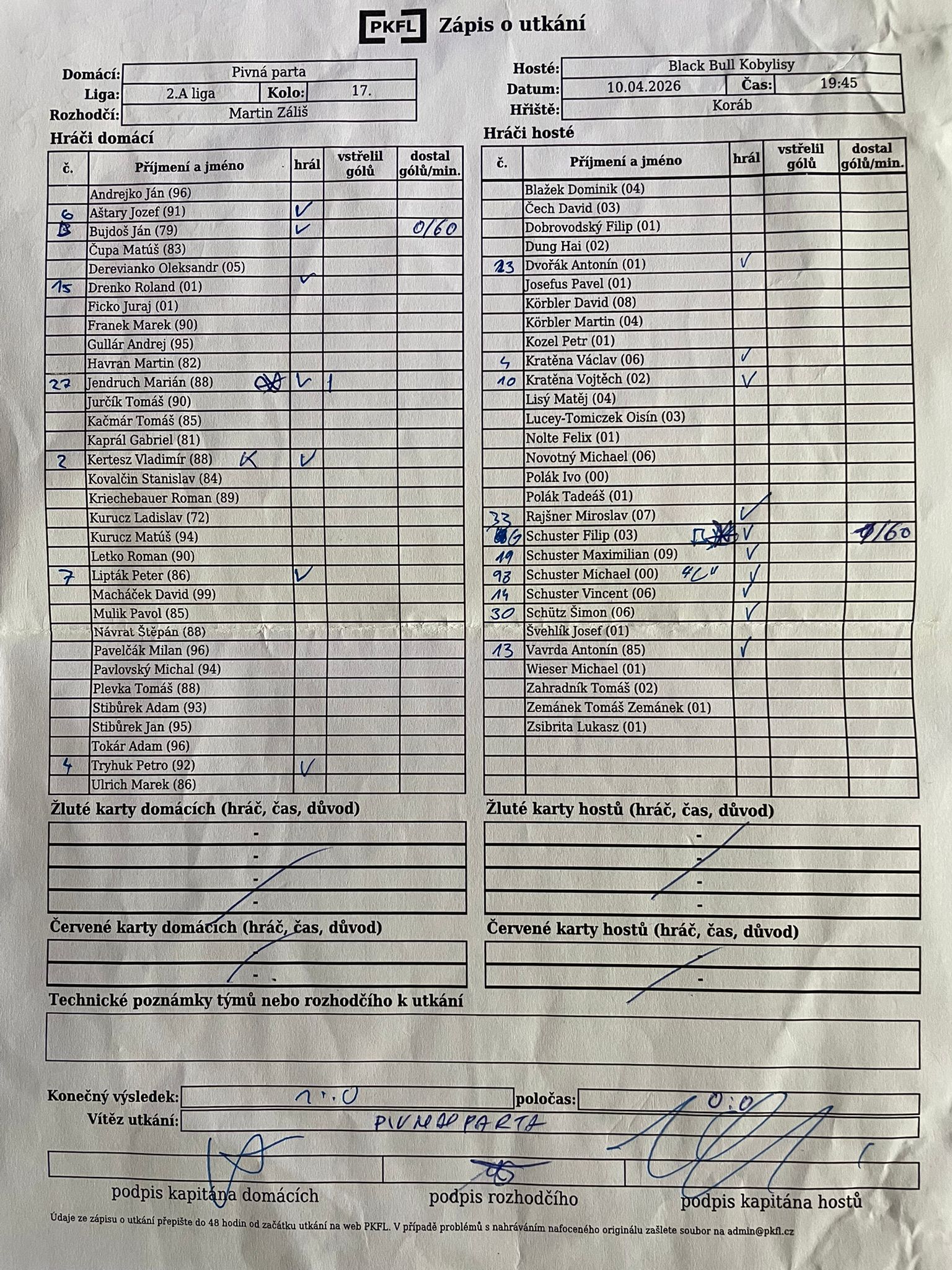 Zápis o utkání.