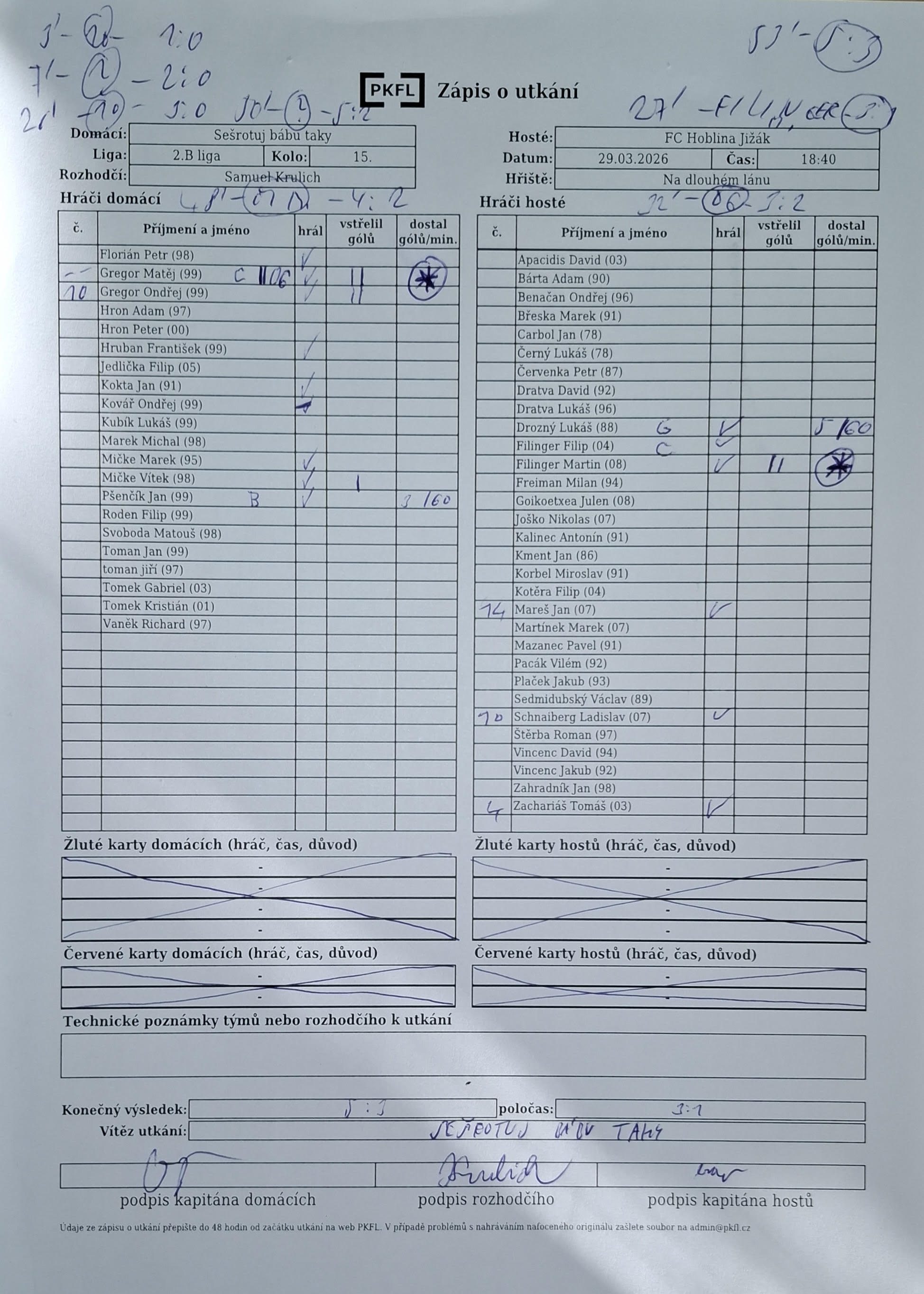 Zápis o utkání.
