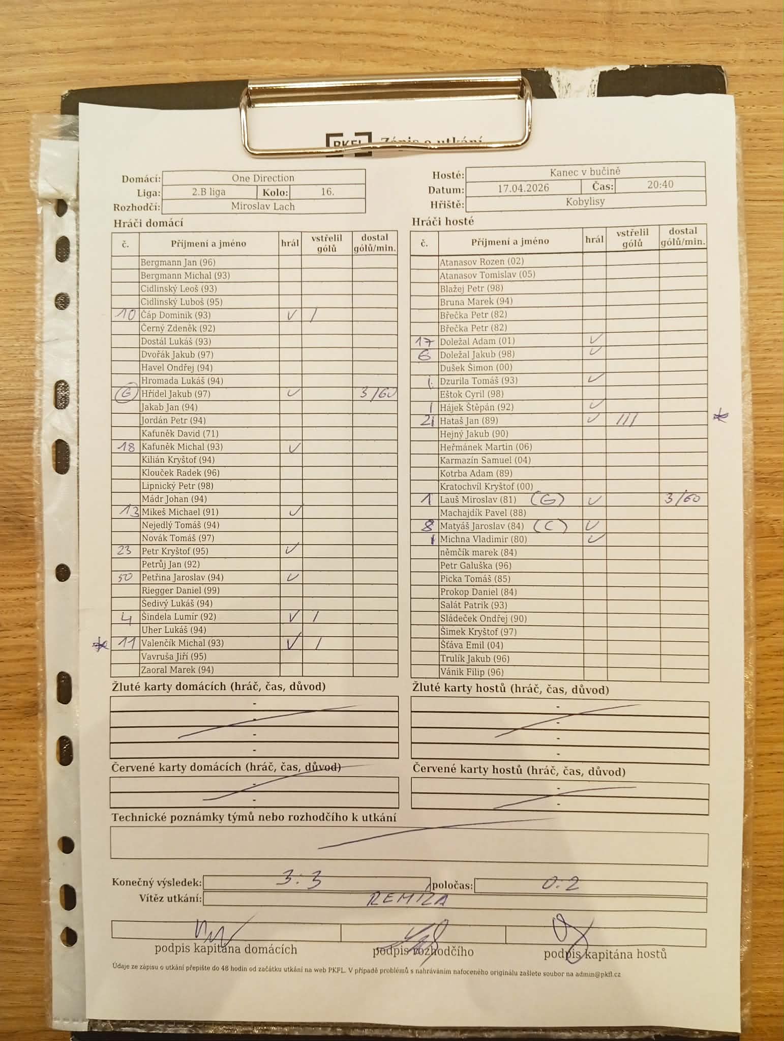 Zápis o utkání.