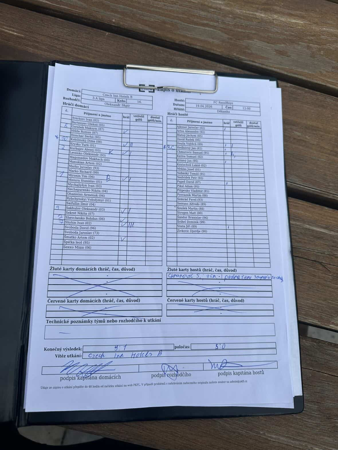 Zápis o utkání.