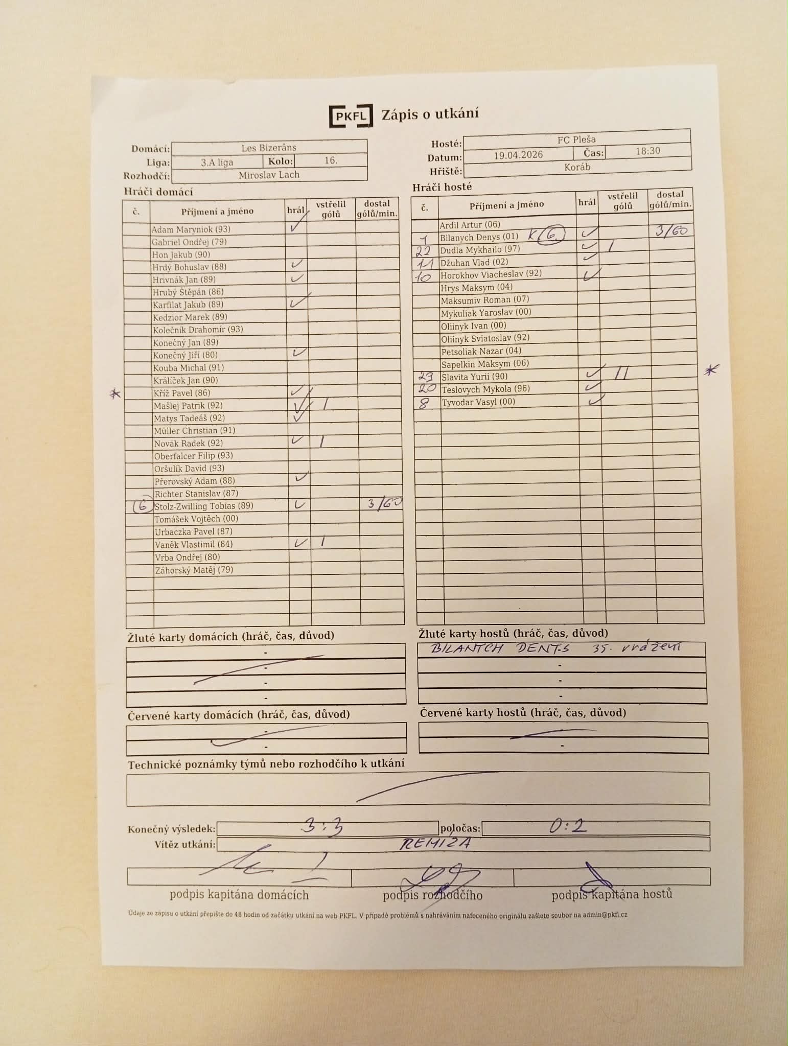 Zápis o utkání.
