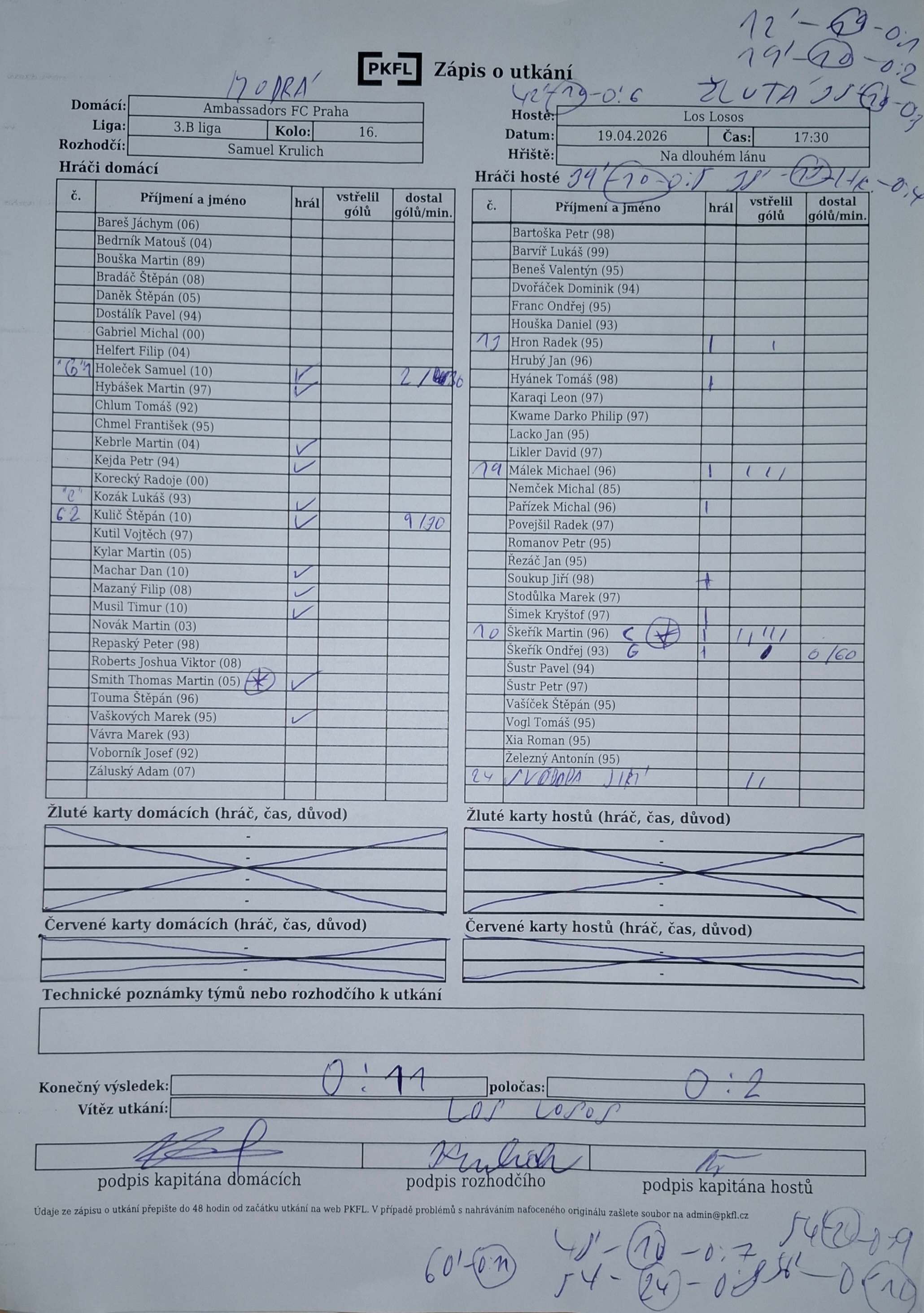 Zápis o utkání.