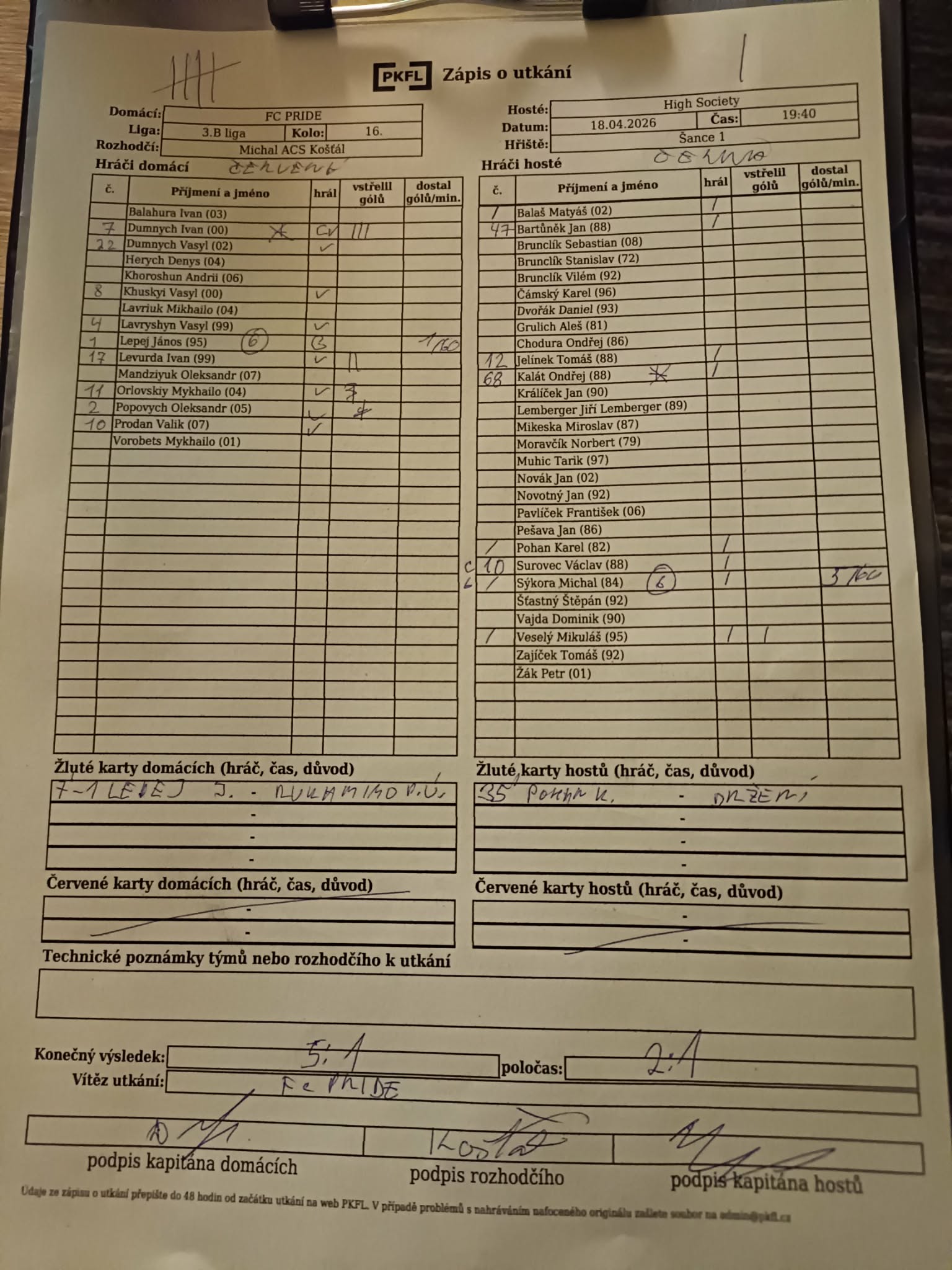 Komentář: Pohledné útočné utkání ve kterém si obě mužstva vytvořila několik golových příležitostí ale zatím co domaci své šance částečně využili hosté proměnili jen jednu i díky domácímu brankáři.