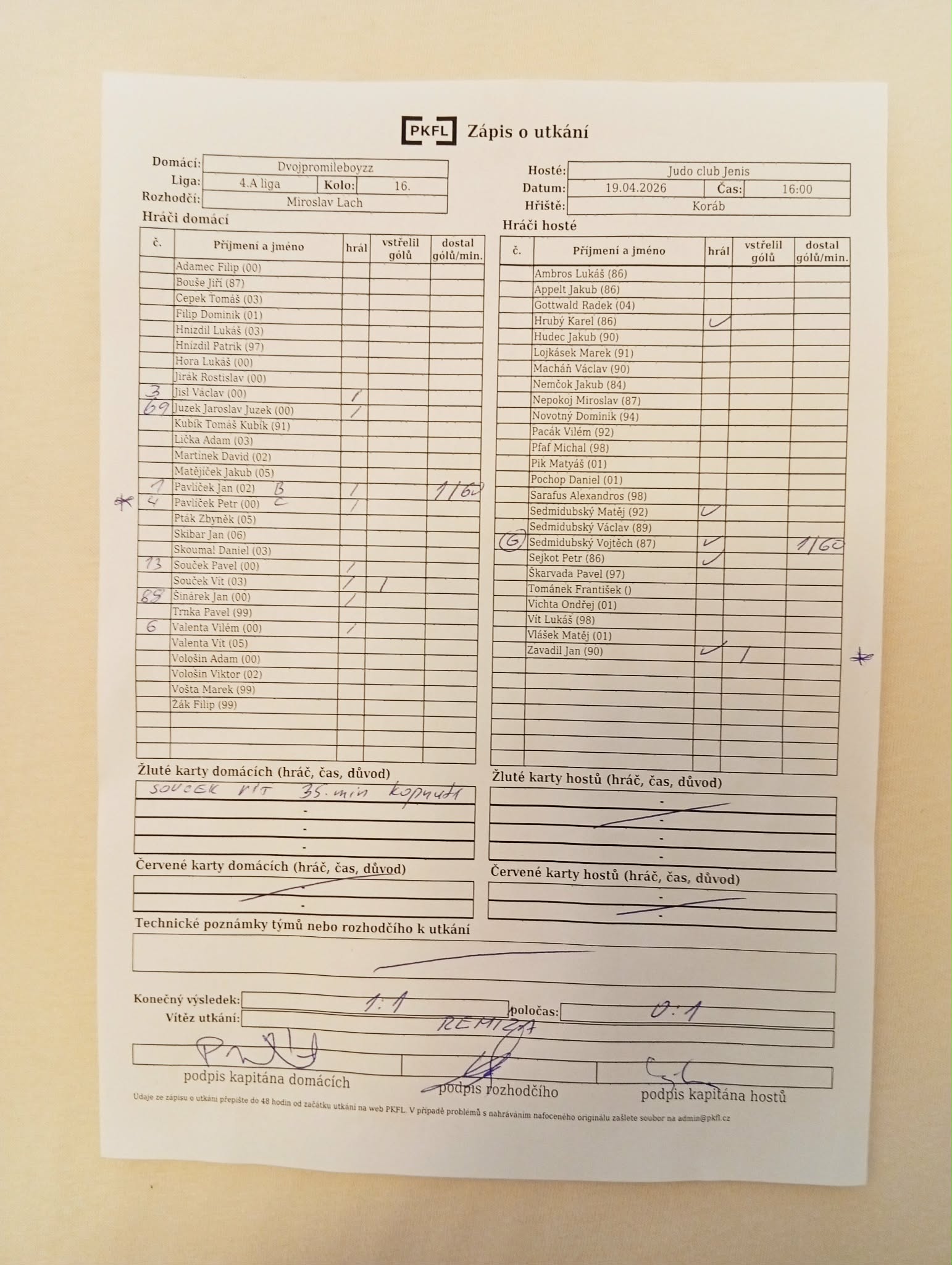 Zápis o utkání.